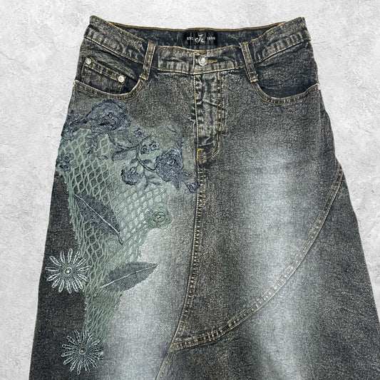 EST 1888 Floral Embroidery Denim Maxi Skirt